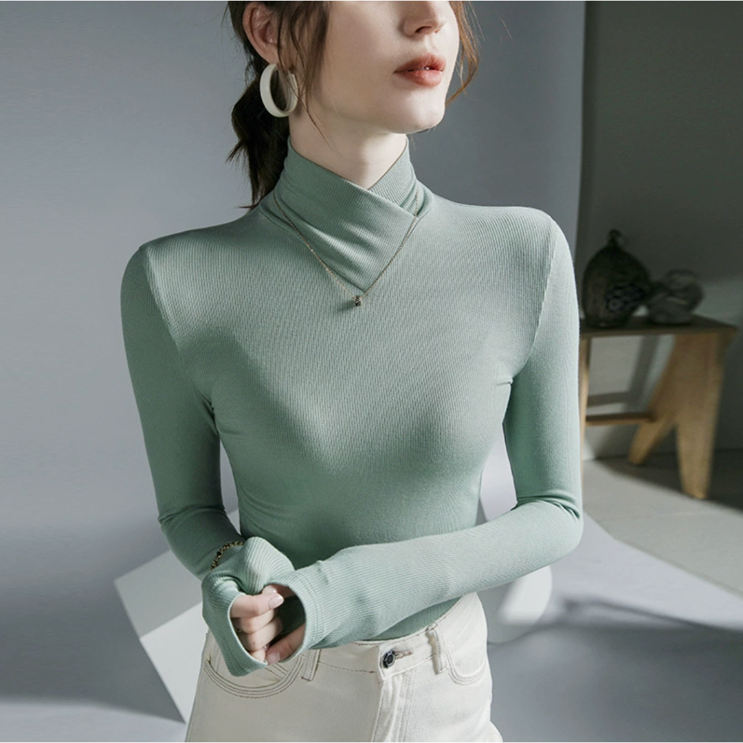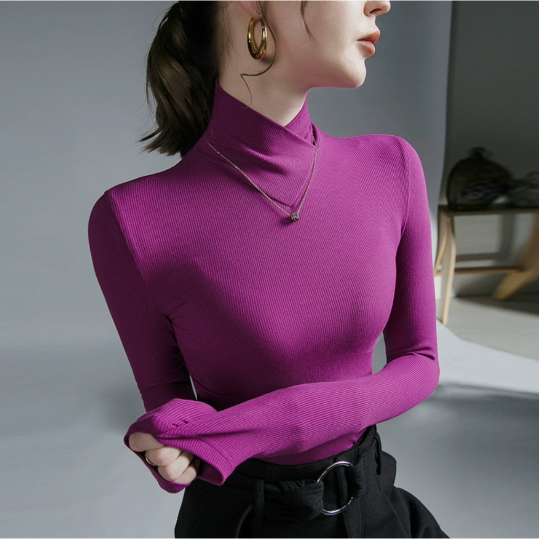 Stazia kombinerer klassisk eleganse med moderne komfort i en pologenser som gir antrekket et raffinert uttrykk. Det minimalistiske designet og den høye kragen skaper en stilfull look, mens det myke materialet føles behagelig mot huden.